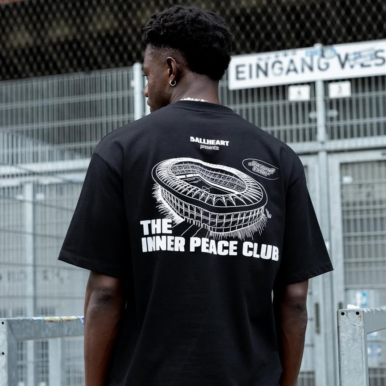 BALLHEART überträgt Motive aus Stadion, Spiel und Fankultur in eine Streetwear-Ästhetik. Grafiken wie Stadionillustrationen oder spielbezogene Motive greifen vertraute Bilder des Fußballs auf und setzen sie in einen neuen Kontext. So wird die emotionale Welt des Spiels in eine visuelle Sprache für den Alltag übersetzt.