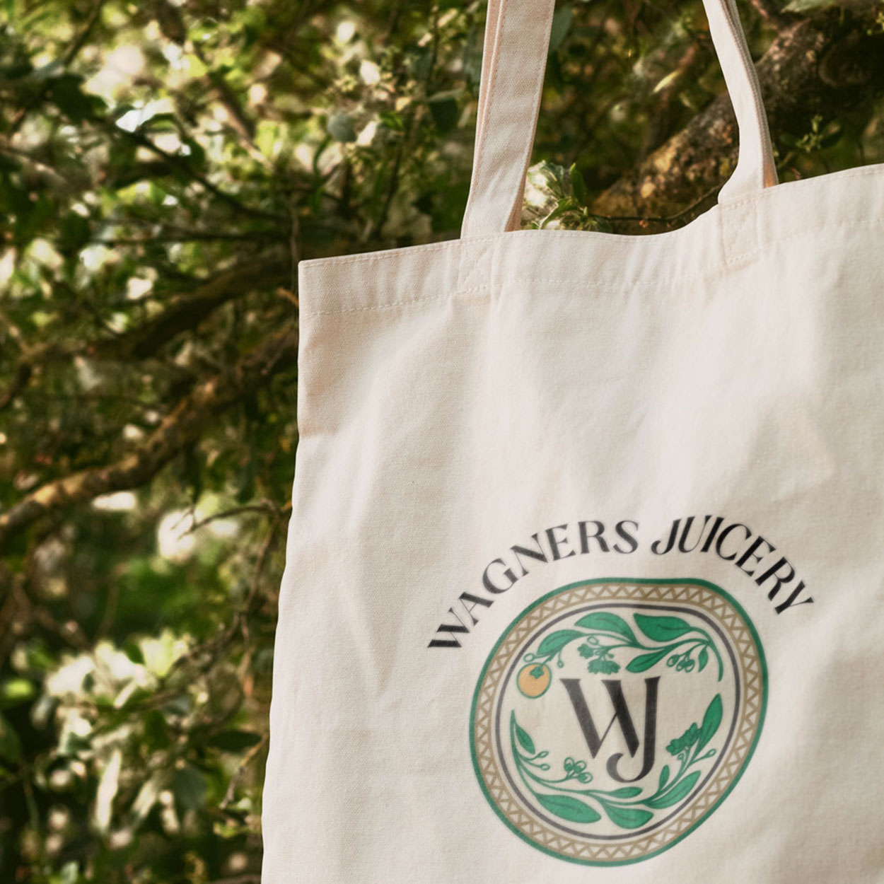 Wagners Juicery verbindet vegane Gastronomie mit einer Bildwelt, die Natürlichkeit nicht behauptet, sondern sichtbar macht. Das Zeichen mit botanischen Elementen und klassischer Typografie gibt der Marke eine kultivierte, fast emblematische Präsenz jenseits gängiger Health-Food-Codes.